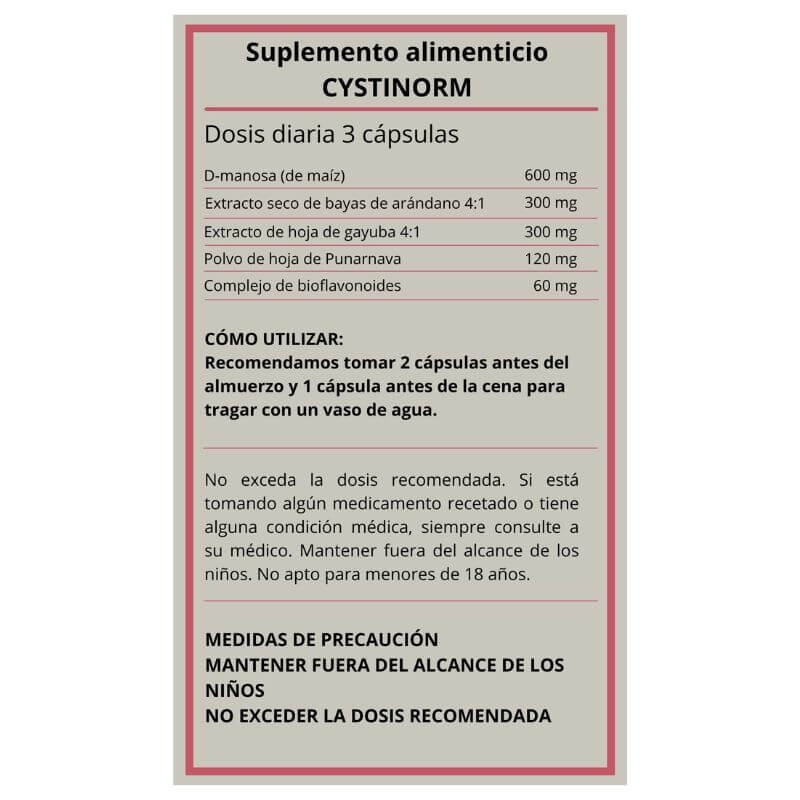 A composição de CystiNorm inclui D-mannose, extrato de cranberry, extrato de uva ursi e bioflavonoides, todos reconhecidos por suas propriedades antimicrobianas, anti-inflamatórias e antioxidantes. Esses ingredientes atuam sinergicamente para impedir que bactérias se fixem na bexiga e no trato urinário, proporcionando alívio rápido dos sintomas e prevenção eficaz de novos episódios.